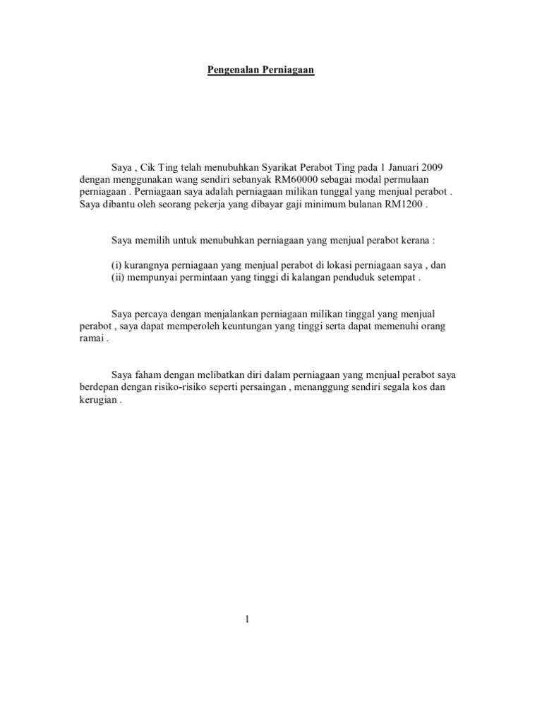 Contoh Pengenalan Dan Profile Perniagaan Pdf